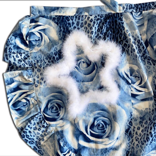 Wrap-Skirt with ruffles made out of a a cotton blend in a satin weave and feather deatiling on the front.